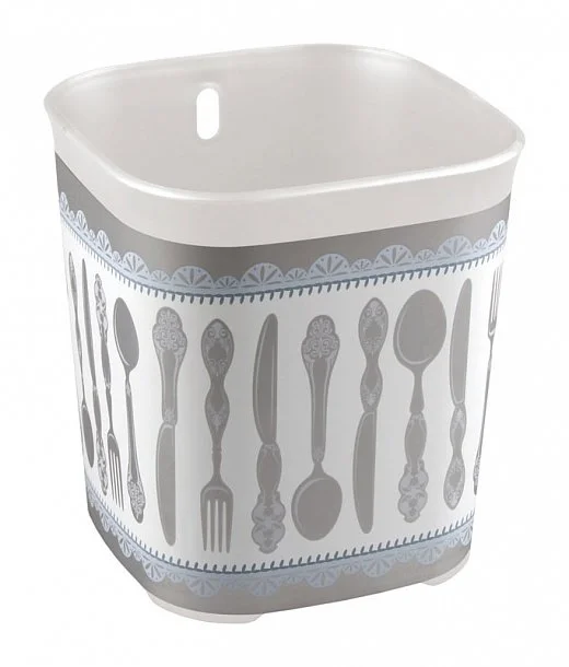 В легкой и вместительной подставке удобно сушить и хранить столовые приборы. Специальное отверстие на подставке позволяет подвесить ее на рейлинг на кухне для экономии места на рабочих поверхностях. Благодаря современной технологии вплавления этикеток декор надежно держится на изделии при использовании и не смывается при контакте с водой.
