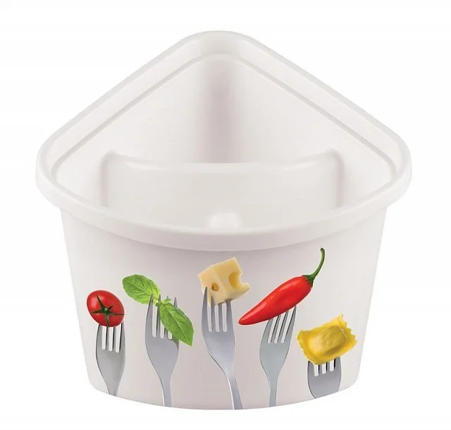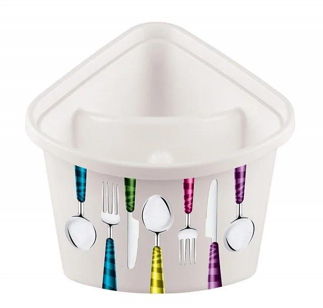 Подставка для столовых приборов угловой формы с привлекательными декорами на корпусе позволит компактно хранить столовые приборы в одном месте и рационально использовать пространство.