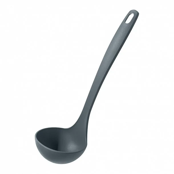 Отверстие в верхней части ручки позволяет хранить половник в подвешенном состоянии. Не скользит в руке благодаря матовой поверхности и эргономичной изогнутой форме ручки.