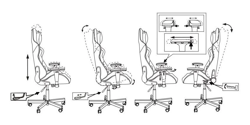 4D- подлокотники, колеса для паркета / ламината, реклайнер
