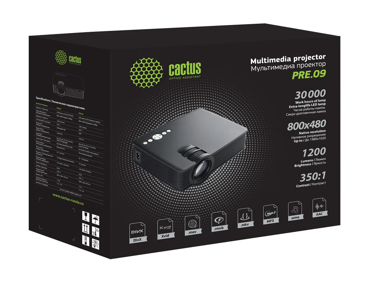 Проектор Cactus CS-PRE.09B.WVGA LCD 1200Lm (800x480) 350:1