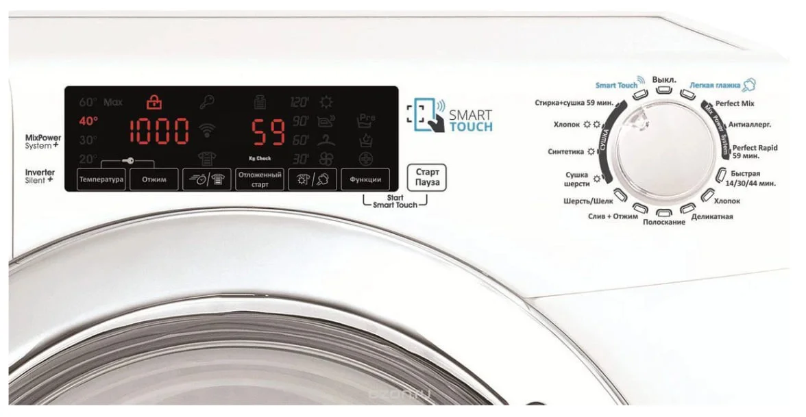 С программой «быстрая стирка и сушка за 59 минут», вы сможете постирать до 1,5 килограммов ваших любимых вещей. Благодаря ускоренному режиму стирки вы также сэкономите до 33% энергии и получите идеальный результат от стирки и сушки. Эта функция идеально подойдет для стирки рубашек и деликатных тканей.
