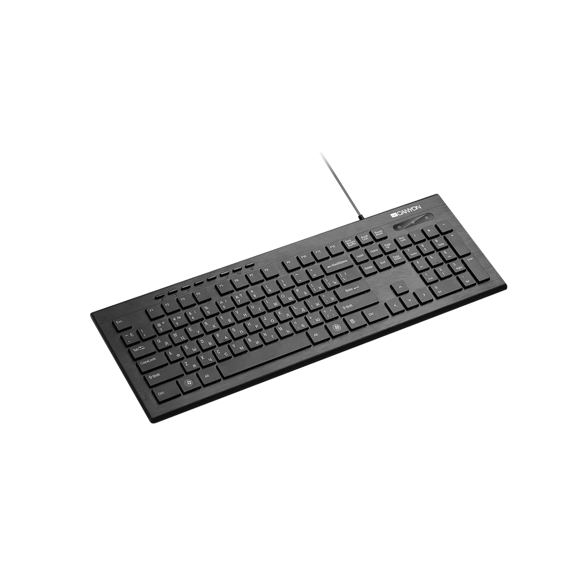 Эта ультратонкая проводная клавиатура с удобными клавишами и декоративной LED-подсветкой по бокам обновит внешний вид вашего рабочего стола. Её клавиши прочные и приятные на ощупь, практически не слышны при нажатии. Благодаря текстуре поверхности, клавиатура защищена от пятен и отпечатков пальцев. Над стандартным набором клавиш размещены мультимедийные кнопки, позволяющие быстро управлять браузером, медиаплеером, звуком и калькулятором.