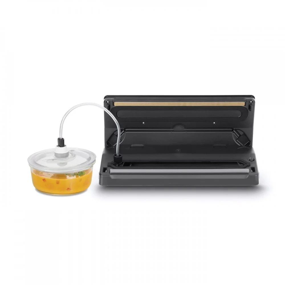 Фирменная комплектация CASO включает 10 профессиональных пакетов (20x30 см) и шланг-переходник для вакуумации контейнеров. При этом вакуумные контейнеры в комплект поставки не входят и приобретаются дополнительно.