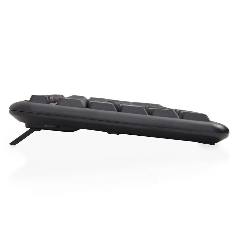 Для удобства работы предусмотрены выдвигающиеся ножки, обеспечивающие оптимальный наклон корпуса клавиатуры относительно поверхности стола.