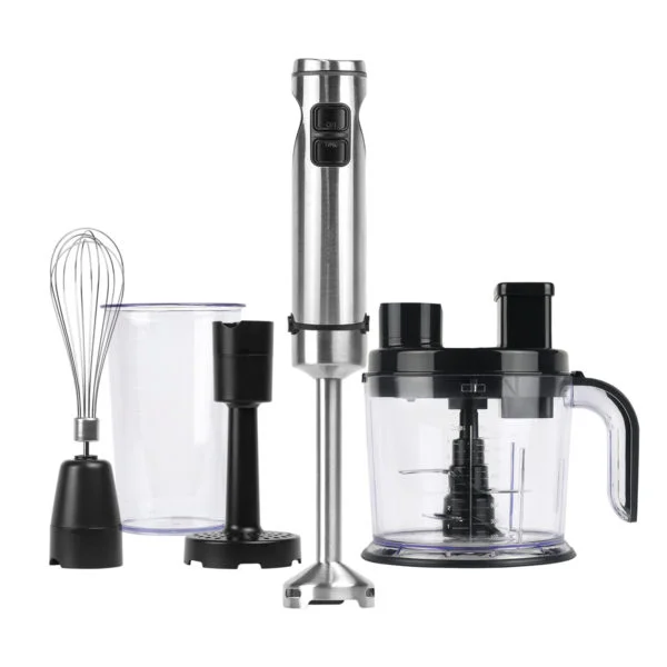 Блендер Centek CT-1315 – это многофункциональный качественный прибор, позволяющий смешать или измельчить продукты в считаные секунды. Погружной блендер с острыми ножами из нержавеющей стали обеспечит однородную текстуру без комочков. Чоппер укомплектован тремя видами дисков: для измельчения, для нарезки слайсами и для нарезки кубиками. В комплект также входят насадки для взбивания и замешивания теста, насадка для приготовления пюре, капучинатор для взбивания молока и мерный стакан объемом 800 мл. Прибор отличается высокой производительностью и надежностью материалов. Для вашего комфорта предусмотрены удобные крепления-замочки, которые дают возможность быстро менять насадки. Форма рукоятки адаптирована под кисть руки.