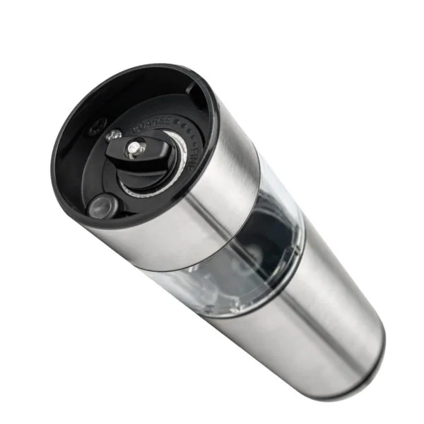Свежий и ароматный помол благодаря электрической мельнице CENTEK СТ-7021! Мельница выполнена из нержавеющей стали и прочного пищевого пластика, предназначена для измельчения перца горошком, соли и других специй. Запуск механизма осуществляется одним нажатием, при работе мельницы срабатывает подсветка. Контейнер для специй имеет увеличенный объем 70 мл, прозрачные стенки позволяют контролировать наличие специй. Электромельница оснащена керамическими жерновами, которые не окисляются и не перегреваются в процессе помола. 5 степеней помола позволяют получить как дробленный перец для стейка на гриле, так и более тонкий помол для деликатных соусов.