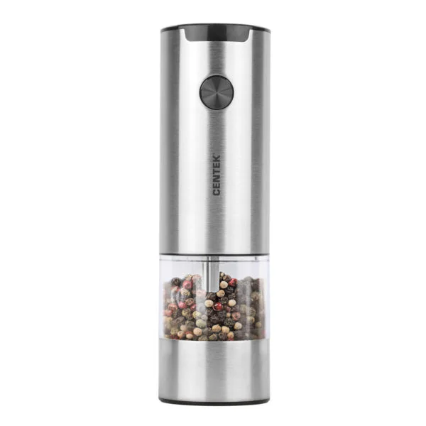 Свежий и ароматный помол благодаря электрической мельнице CENTEK СТ-7022! Мельница выполнена из нержавеющей стали и прочного пищевого пластика, предназначена для измельчения перца горошком, соли и других специй. Запуск механизма осуществляется одним нажатием, при работе мельницы срабатывает подсветка. Контейнер для специй имеет увеличенный объем 70 мл, прозрачные стенки позволяют контролировать наличие специй. Электромельница оснащена керамическими жерновами, которые не окисляются и не перегреваются в процессе помола. 5 степеней помола позволяют получить как дробленный перец для стейка на гриле, так и более тонкий помол для деликатных соусов.