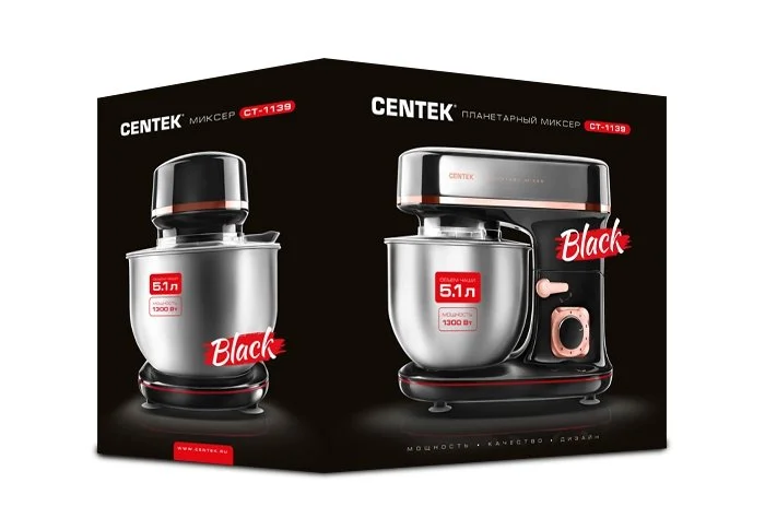 Планетарный миксер 1300W CENTEK CT-1139 Black