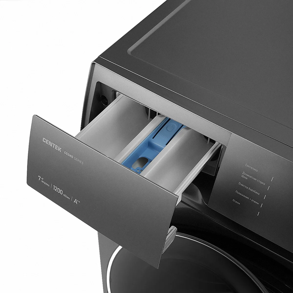 Компактная стиральная машина CENTEK COSMO SERIES СТ-1972 с сенсорным управлением. Данная модель оснащена специальной системой, которая способна распознавать неравномерное распределение белья в барабане, и исключает разбалансировку двигателя. Помимо основных функций, машина оснащена: функцией «Дозагрузка белья», отсрочкой старта, функцией «Блокировка от детей», функцией «Гипоаллергенная стирка». Увеличенный объем камеры позволяет вместить до 7 кг белья за один цикл стирки. Данная модель энергоэффективна, и ей присвоен класс энергопотребления А++. Скорость отжима CENTEK CT-1972 1200 ОБ/мин.