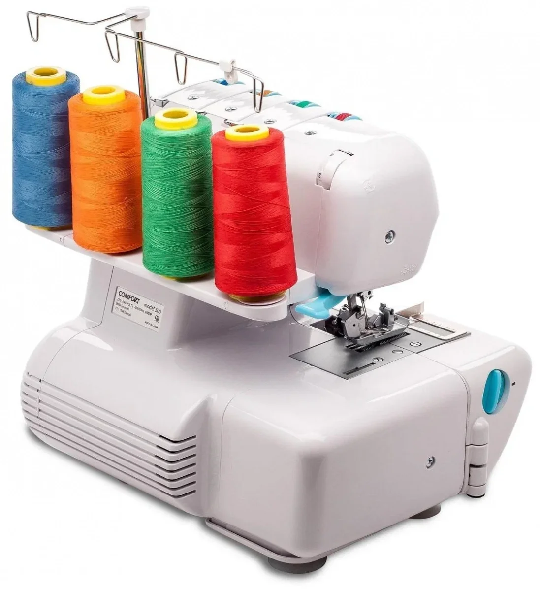 Comfort 500 - это швейная машина, основное предназначение которой - обрезка и обработка краёв ткани при шитье изделий из сыпучих тканей. Несколько нитей прочно охватывают срез материала и, образуя краеобметочные швы, препятствуют роспуску материала. Оверлок за один проход обрезает излишек ткани, стачивает детали и обметывает срез.
