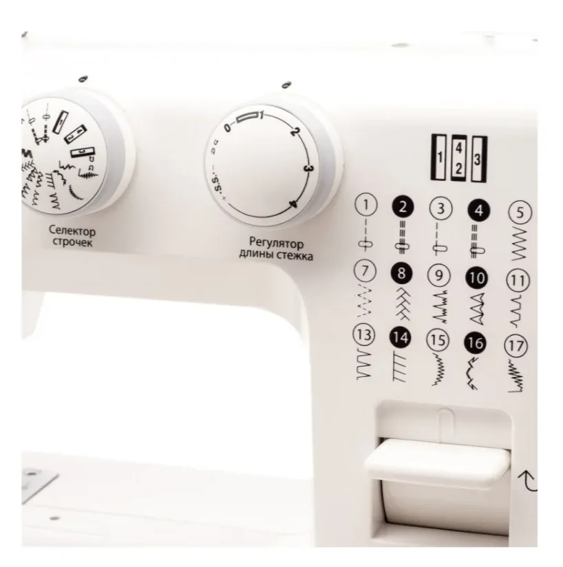 | Комплект поставки | Швейная машина, сетевой шнур с педалью, набор лапок, набор игл, шпульки, вспарыватель, отвертка, чехол, документация |