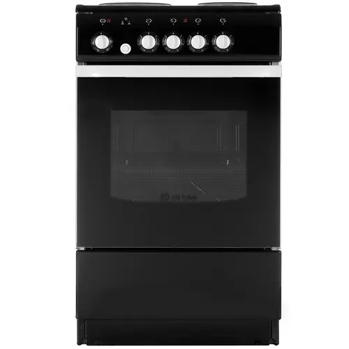 Эмалированное покрытие черного цвета характеризуется практичностью и простотой в уходе. Для удобства в использовании духовой шкаф оборудован откидной дверцей со съемной конструкцией и подсветкой. В нижней части плиты DeLuxe 5004.12Э имеется выдвижной ящик для хранения посуды.