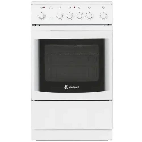 Электрическая плита DeLuxe 506004.03ЭС изготавливается в классическом белом цвете из эмалированной стали, при этом варочная поверхность – стеклокерамическая. Вся конструкция легко будет отмываться от любых загрязнений и прослужит своим пользователям долгий срок.