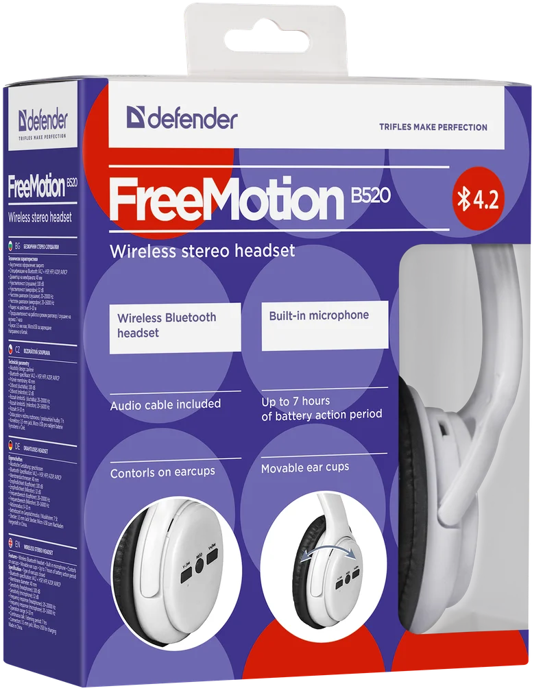 Беспроводная гарнитура Defender FreeMotion B520 белый, Bluetooth
