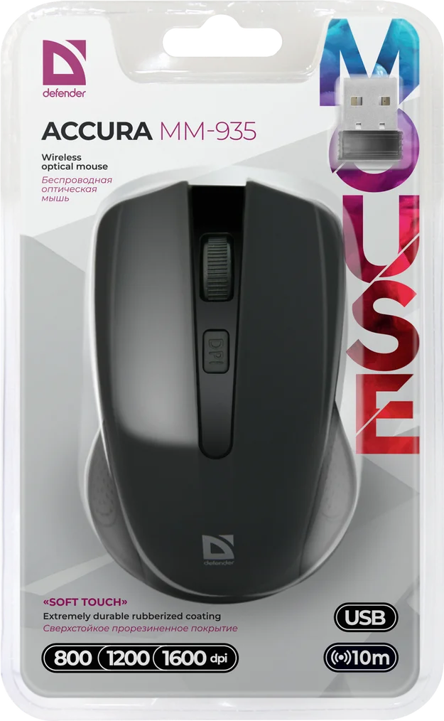 Беспроводная оптическая мышь Defender Accura MM-935 черный,4 кнопки,800-1600 dpi
