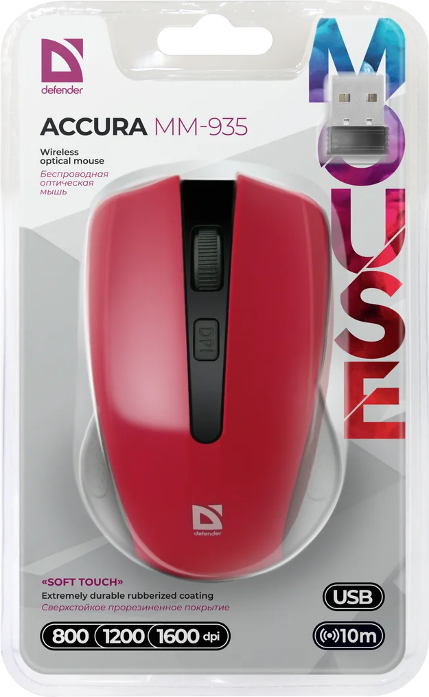 Беспроводная оптическая мышь Defender Accura MM-935 красный,4 кнопки,800-1600 dpi