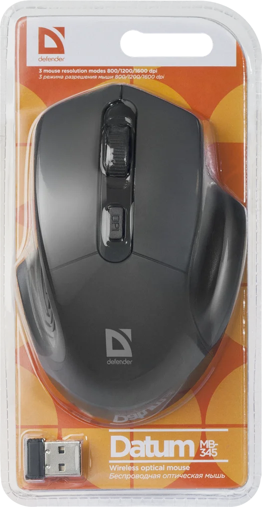 Беспроводная оптическая мышь Defender Datum MB-345 черный,4 кнопки, 800-1600 dpi