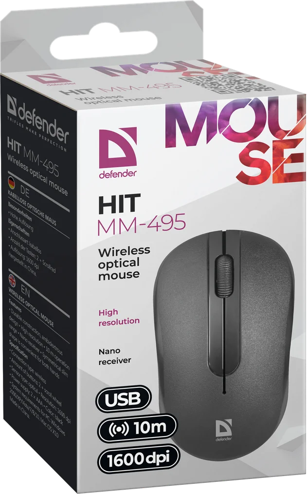 Беспроводная оптическая мышь Defender Hit MM-495 черный,3 кнопки,1600 dpi