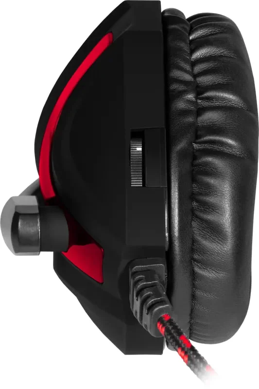 Стильная игровая гарнитура с приятным на ощупь покрытием корпуса, комфортными амбушюрами, удобным регулируемым оголовьем и тканевой оплеткой кабеля