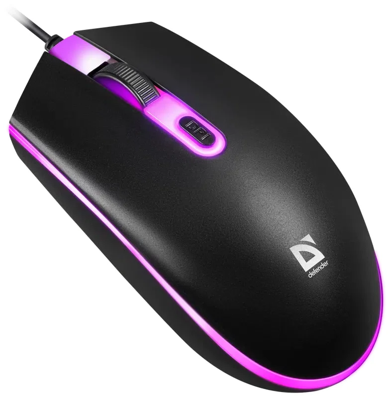 Прочная мышь симметричной конструкции, 7 цветов яркой подсветки, 4 кнопки, возможность выбора разрешения: 1000/1600 dpi. Удлиненный кабель 1,8 м.