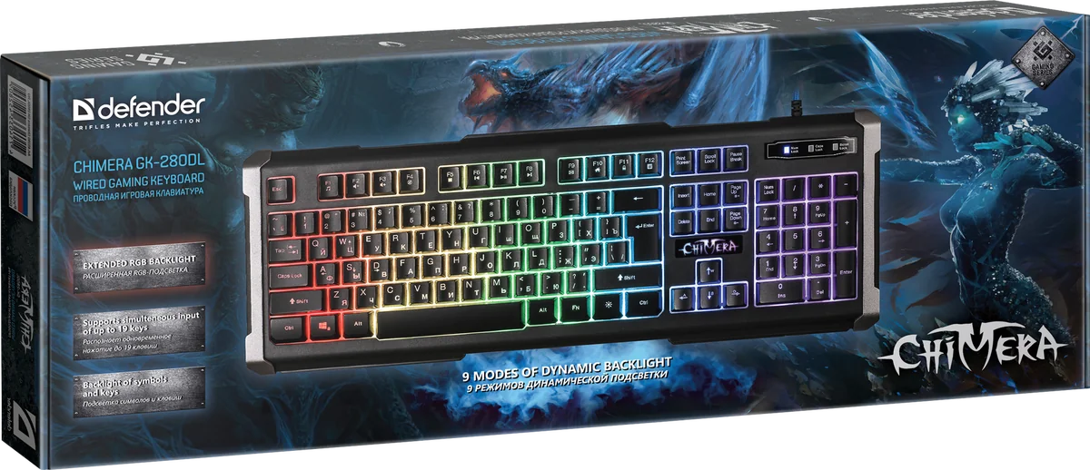 FN+1 Мерцающая радужная волна, FN+2 Бегущая радужная волна, FN+3 Пульсирующая 7-цветная подсветка, FN+4 Бегущая 3-цветная подсветка, FN+5 Статичная подсветка 1 из 7 цветов, FN+6 Динамическая подсветка всеми цветами спектра, FN+7 Настраиваемая разноцветная подсветка каждой из 6 зон клавиатуры*, FN+8 7-цветная подсветка, реагирующая на нажатие, FN+9 Звукоактивная подсветка.