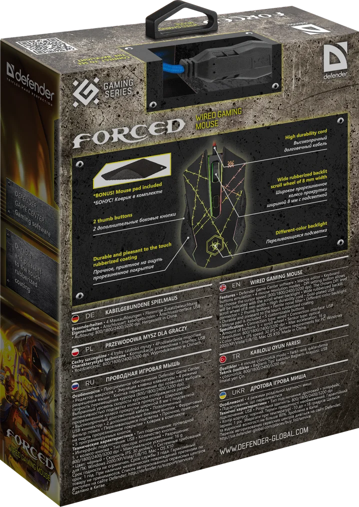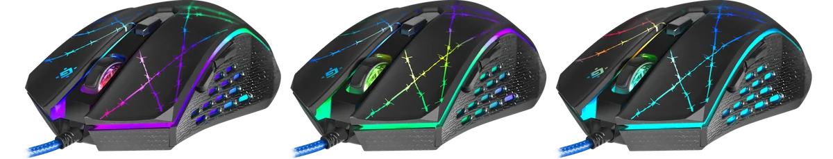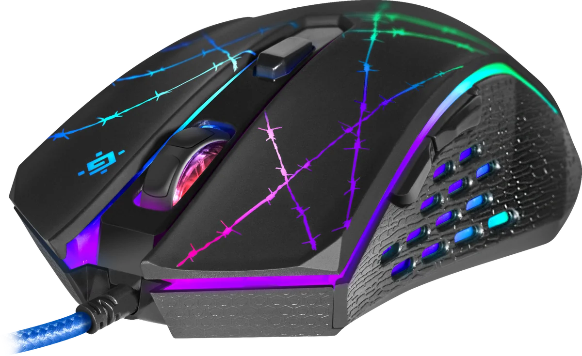 - Кнопка переключения dpi позволяет выбрать скорость перемещения курсора (800/1800/2400/3200 dpi). Выбранный уровень скорости курсора отображается разной интенсивностью подсветки колеса прокрутки.