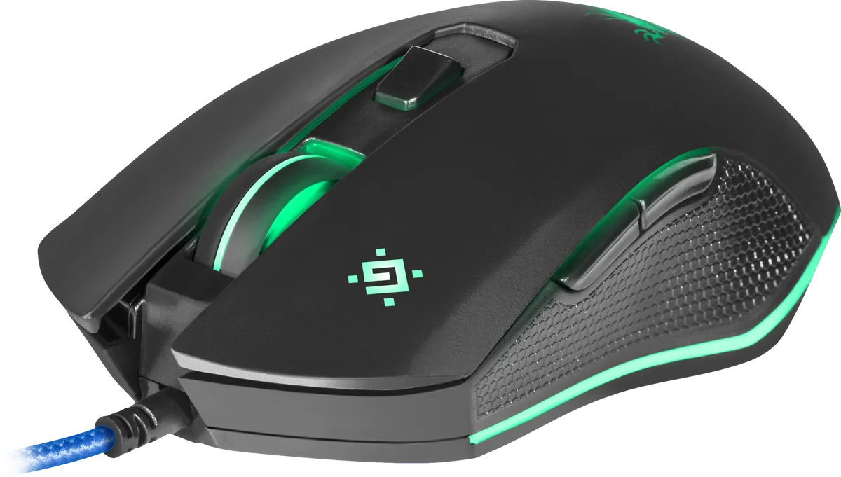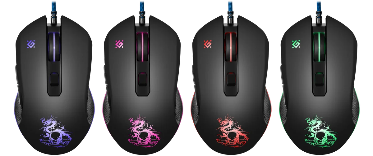 - Кнопка переключения dpi позволяет выбрать скорость перемещения курсора (800/1800/2400/3200 dpi). Выбранный уровень скорости курсора отображается разной интенсивностью подсветки колеса прокрутки.