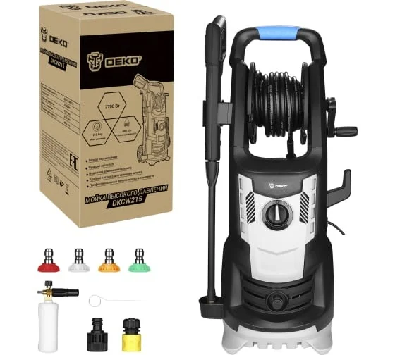 Мойка высокого давления DEKO DKCW215 предназначена для мытья транспортных средства (машин, лодок, мотоциклов и т.д.), очистки загрязненных поверхностей при помощи чистой воды под высоким давлением (при необходимости с добавлением моющих средств) в бытовых условиях.