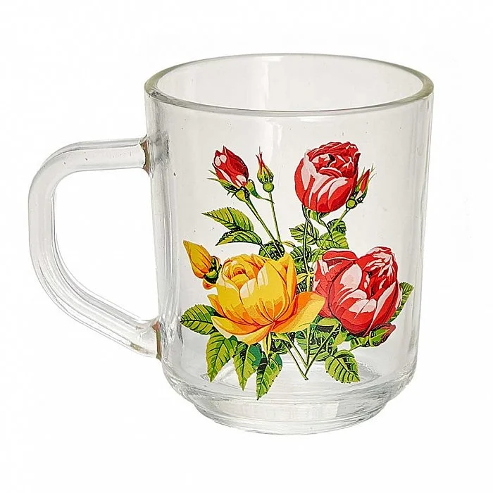- Кружка для чая из высококачественного стекла с декоративным рисунком