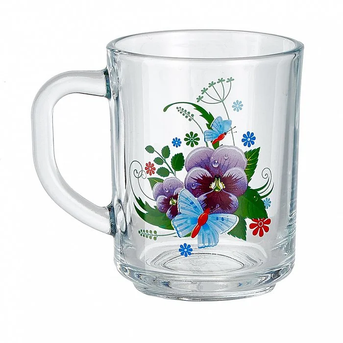 - Кружка для чая из высококачественного стекла с лепковой деколью