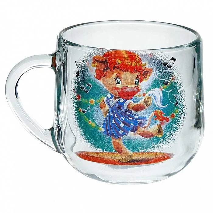 - Кружка для чая из высококачественного стекла с декоративным рисунком