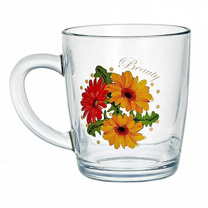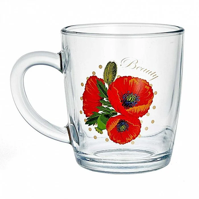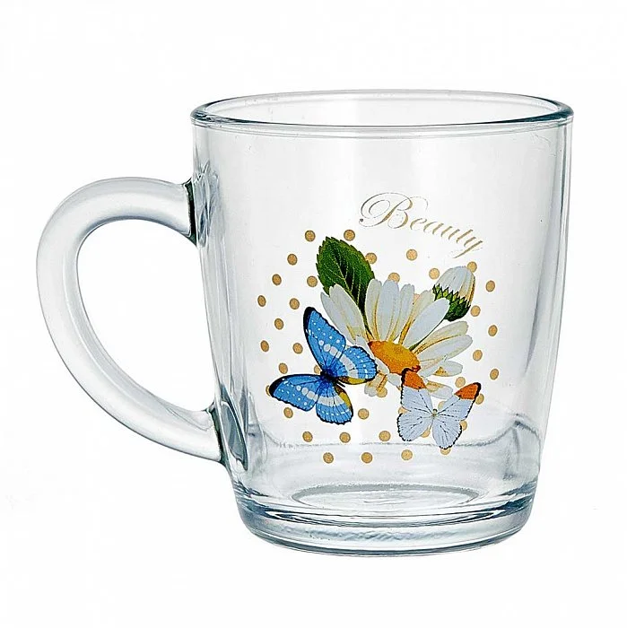 - Кружка из высококачественного прозрачного стекла с декором