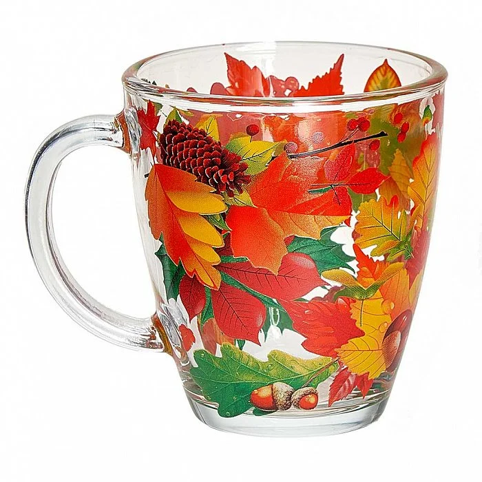 - Кружка для чая из высококачественного стекла с декоративным рисунком