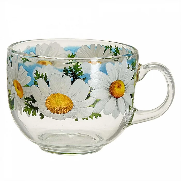 - Кружка для чая из высококачественного стекла с круговой деколью