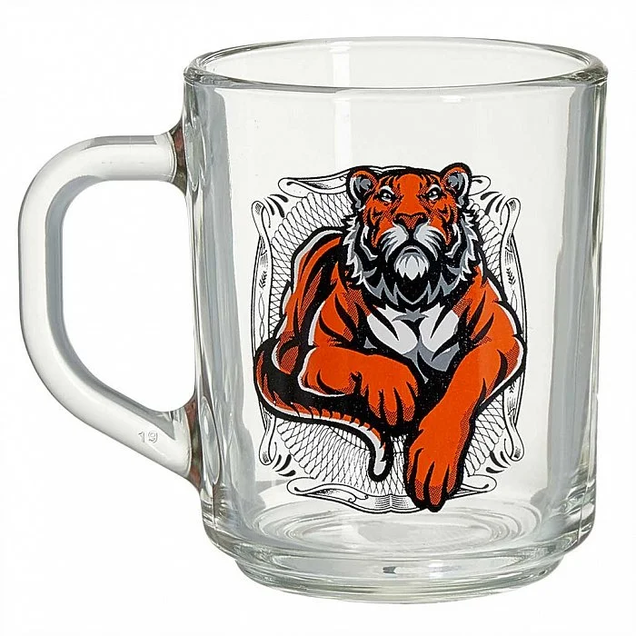 - Кружка для чая из высококачественного прозрачного стекла с деколью
