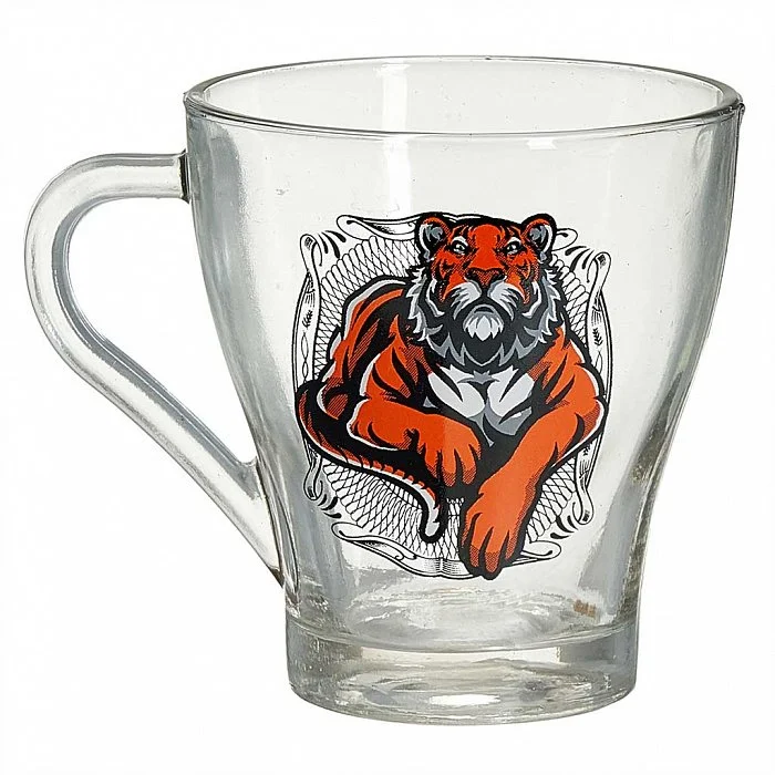 - Кружка для чая из высококачественного прозрачного стекла с деколью