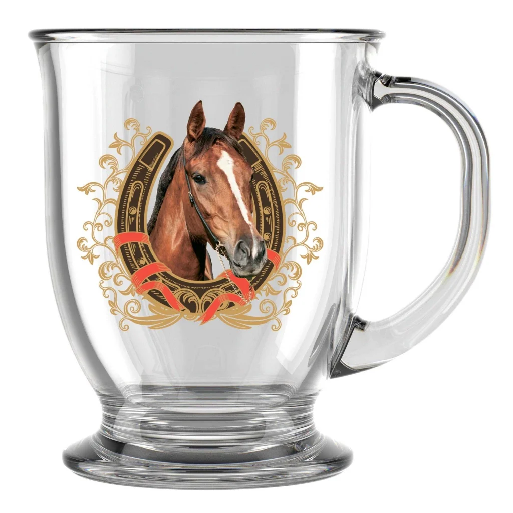 - Кружка для чая из высококачественного прозрачного стекла с деколью