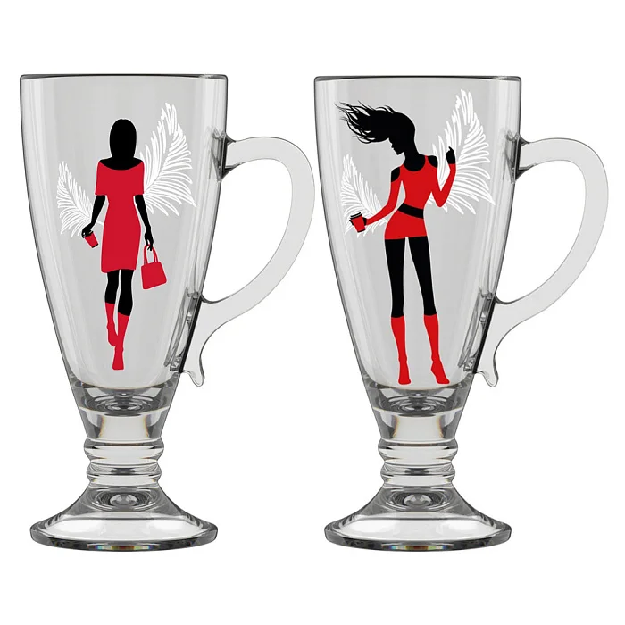 - Набор кружек для чая/кофе из высококачественного стекла с деколью
