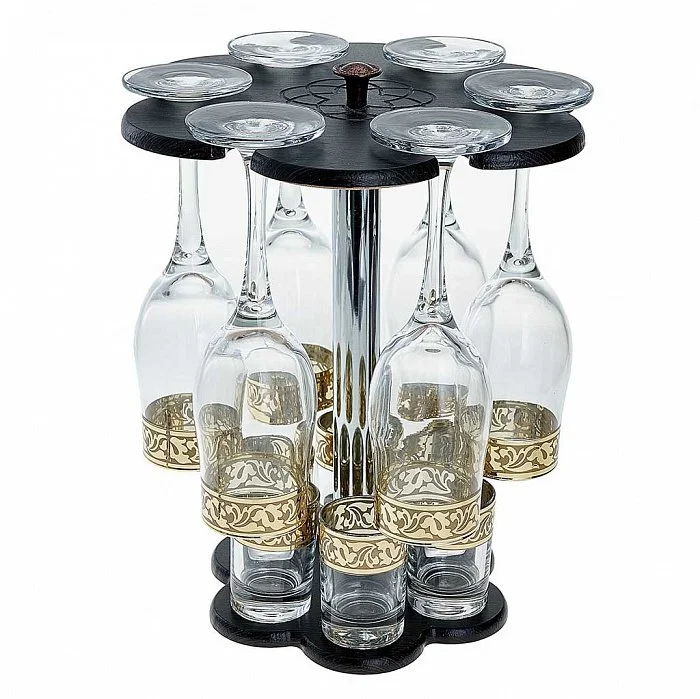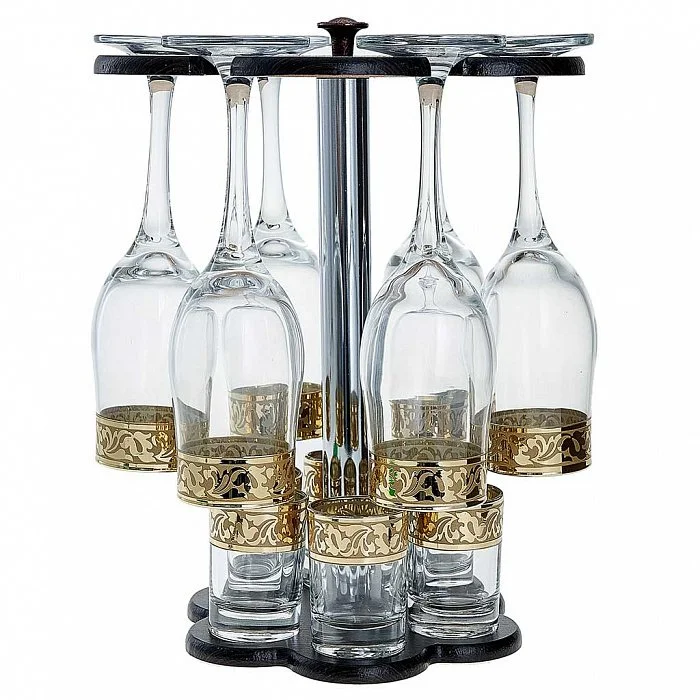 - Набор 12 предметов из высококачественного стекла на деревянной стойке