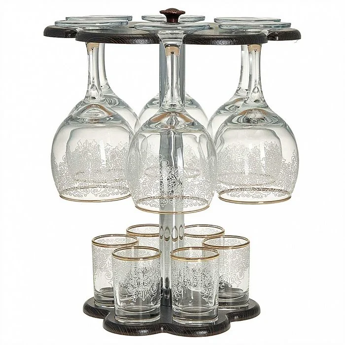 Мини-бар на деревянной стойке 12 предметов (Боярский) гравировка, отводка золотом Декостек 1501-Г32
