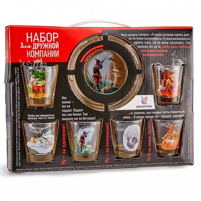 Бокалы, фужеры, рюмки, стаканы, графины » ДЕКОСТЕК Набор подарочный 7 предметов Охота 1210-Д Набор подарочный 7 предметов ДЕКОСТЕК Охота 1210-Д Производитель: ДЕКОСТЕКОбъем: 0-99 млТип: водкаНаличие: Нет в наличииБонусы: 9 ₽ Код товара: 24400 нет в наличии Описание Параметры В наборе 7 предметов: стопка 50мл 6 штук пепельница 1 штука Описание Подарочный набор из высококачественного стекла с декором Декор: Охота Упаковка: подарочная коробка с пластиковой ручкой Производитель: Россия Поделитесь ссылкой:
