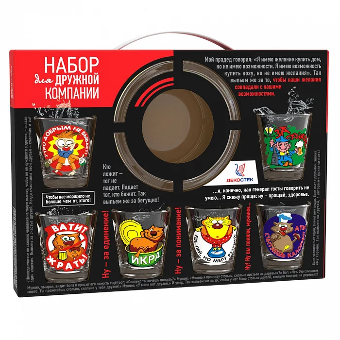 Набор подарочный 7 предметов (пепельница + 6 стаканов) Приколы 1210-Д