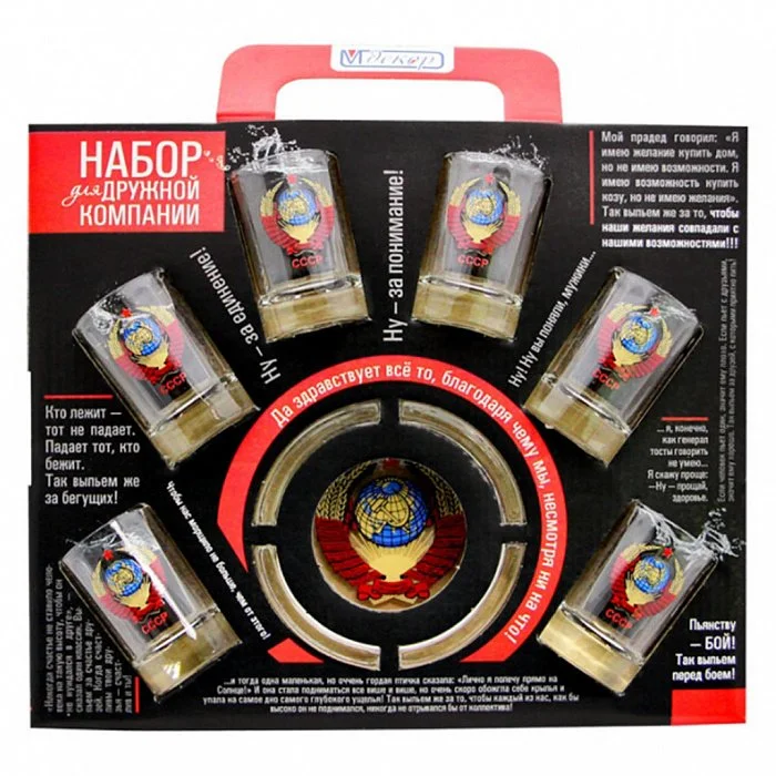 Бокалы, фужеры, рюмки, стаканы, графины » ДЕКОСТЕК Набор подарочный 7 предметов СССР 1210-Д Набор подарочный 7 предметов ДЕКОСТЕК СССР 1210-Д Производитель: ДЕКОСТЕКОбъем: 0-99 млТип: водкаНаличие: Нет в наличииБонусы: 10 ₽ Код товара: 24401 нет в наличии Описание Параметры В наборе 7 предметов: стопка 50мл 6 штук пепельница 1 штука Описание Подарочный набор из высококачественного стекла с декором Декор: СССР Упаковка: подарочная коробка с пластиковой ручкой Производитель: Россия Поделитесь ссылкой: