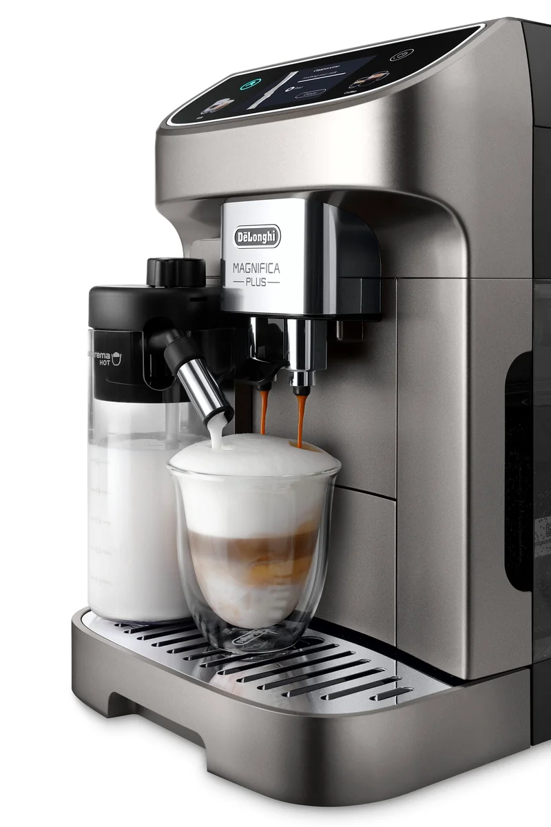 С De'Longhi Magnifica Plus каждый найдет чашку кофе: 18 напитков доступны одним нажатием кнопки. Наслаждайтесь захватывающими впечатлениями благодаря 3,5-дюймовому полносенсорному цветному экрану с четкими значками и персонализируйте избранное с помощью до 4 пользовательских профилей. Побалуйте себя прекрасной, насыщенной пеной с технологией LatteCrema Hot для всех напитков на основе молока. Насыщенный аромат и полный вкус кофе из свежемолотых зерен. LatteCrema Hot дополняет ваши напитки нежной, насыщенной молочной пеной трех текстур: плотной, кремовой или легкой. Интуитивно понятный цветной сенсорный экран с диагональю 3,5 дюйма и четкими значками. Выбирайте из 18 полностью настраиваемых горячих и холодных кофейных напитков. Легко чистить благодаря съемным компонентам, которые можно мыть в посудомоечной машине.