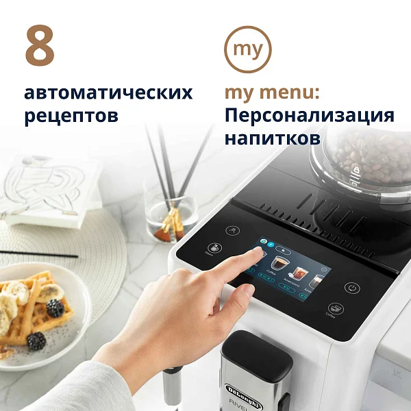 - интуитивно понятный цветной экран с диагональю 3,5 дюйма, позволяющий выбрать 8 напитков одним касанием;