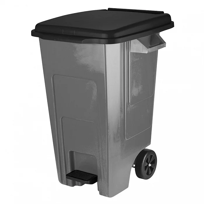 - Бак для мусора с крышкой на колесах с педалью подойдет для загородного дома, офисов, торговых помещений, производственных площадок