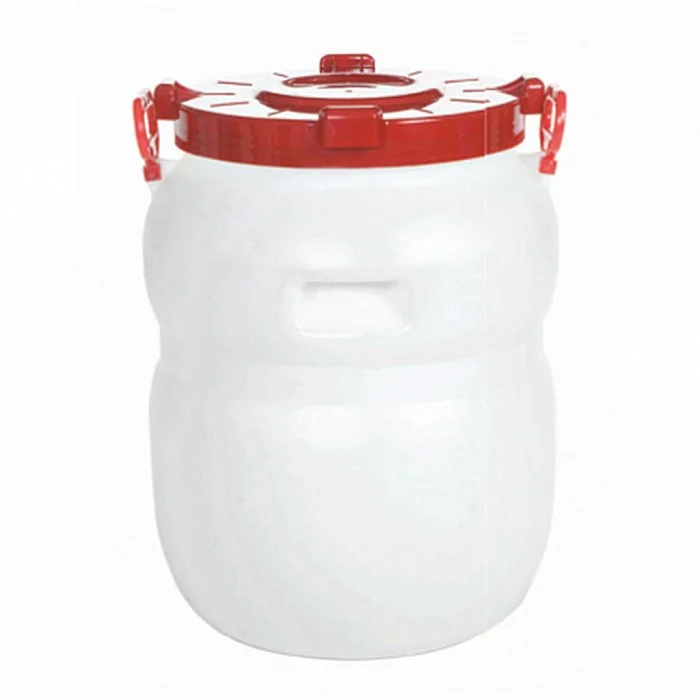 - Бочка изготовлена из пищевых пластмасс, укомплектована навесными ручками и плотно навинчивающейся крышкой с прокладкой