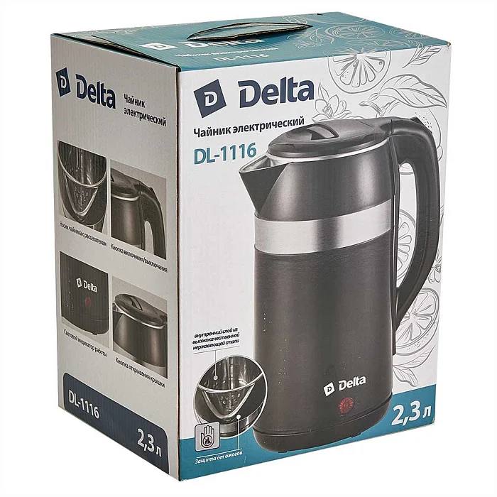 Чайник электрический 1500 Вт, 2,3 л DELTA DL-1116, двойной корпус, черный
