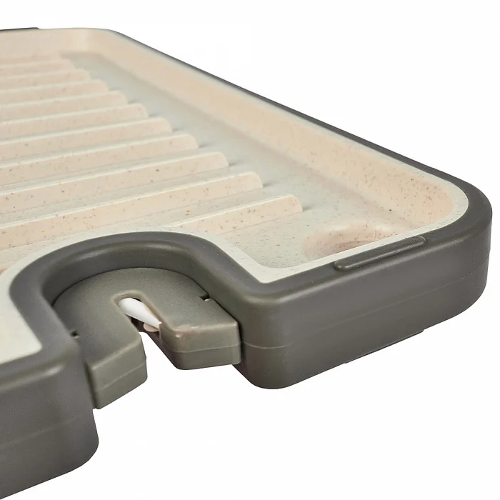 - С одной стороны доски рифлёная поверхность, которая подходит для сушки бокалов, тарелок и столовых приборов